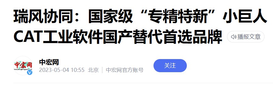 瑞风协同:国家级“专精特新”小巨人 CAT工业软件国产替代首选品牌 - 中宏网