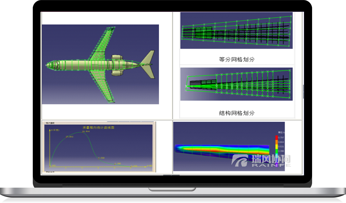 飞行器质量分布系统为重量专业人员提供质量分布计算统计分析工具,主要功能有网格划分、网格变换、质量元管理、质量分配计算、后处理显示等功能。特有的基于全三维模型的分区域质量统计功能,不仅大大简化了质量分配计算的工作量,使得操作人员使用很少的时间和精力即可完成质量分布计算。